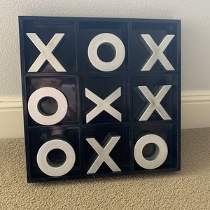 Z GALLERIE TIC-TAC-TOE GAME SET TRAY BLACK & SILVER COFFEE
